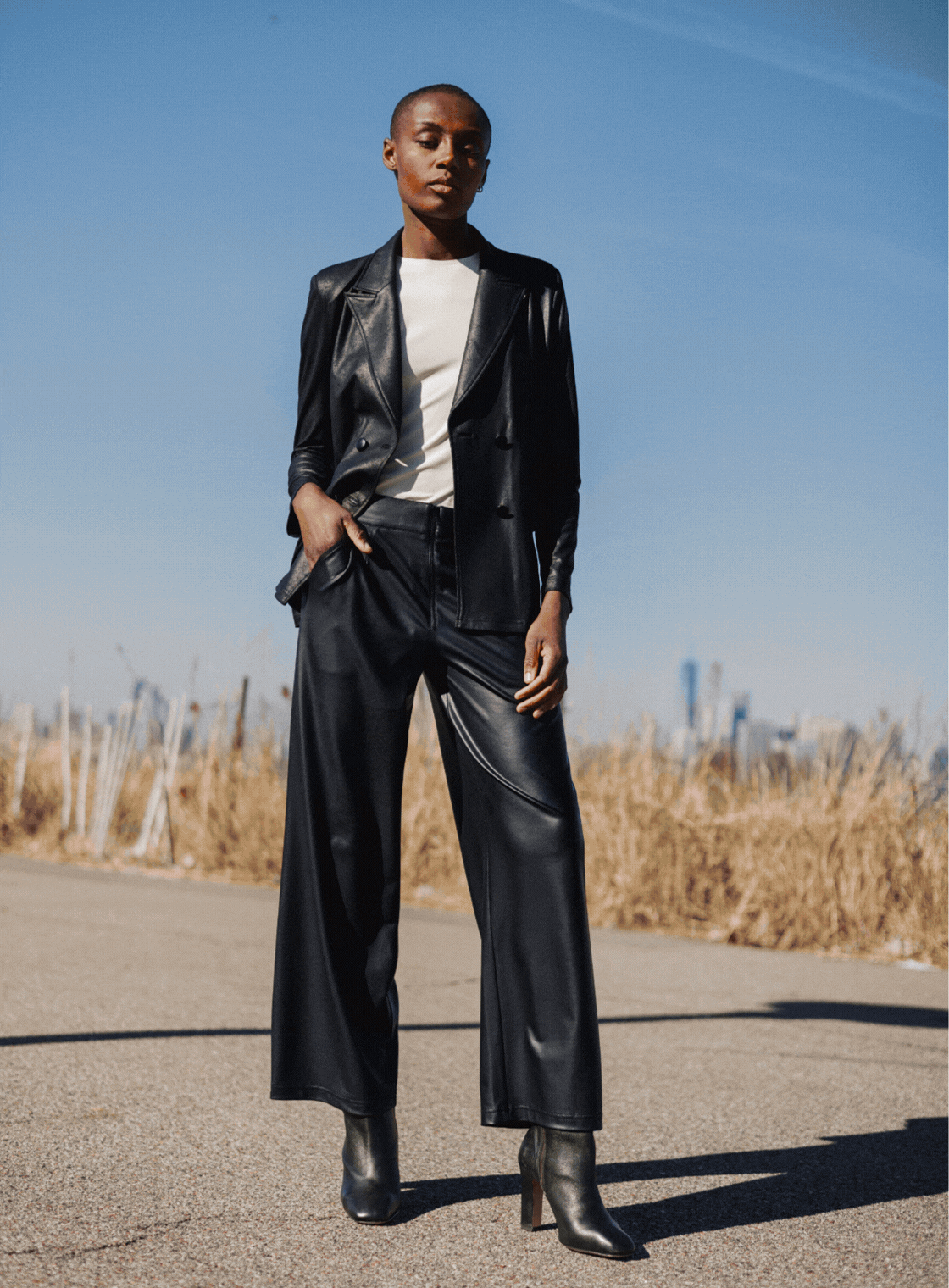 Liquid leather isn't just pleather or traditional leather.It's an exciting innovation from Clara Sunwoo—a knit fabric that's luxuriously soft, stretchable, and breathable.Vegan-friendly and form-fitting, it's like a second skin.